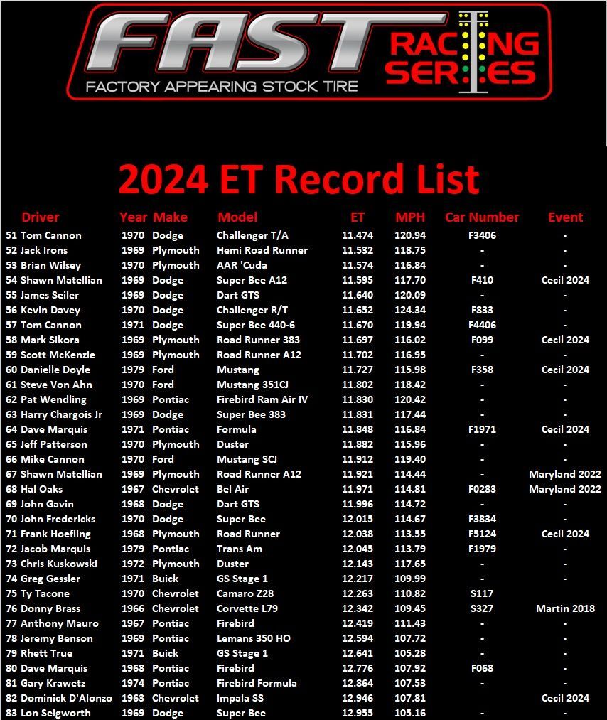 All cars that race in FAST events are eligible for number, preference has been given to racers who have