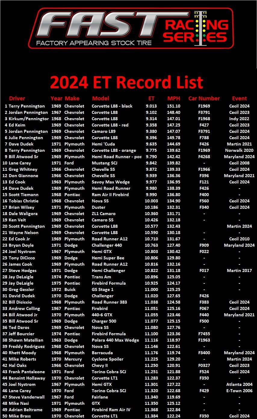 All cars that race in FAST events are eligible for number, preference has been given to racers who have